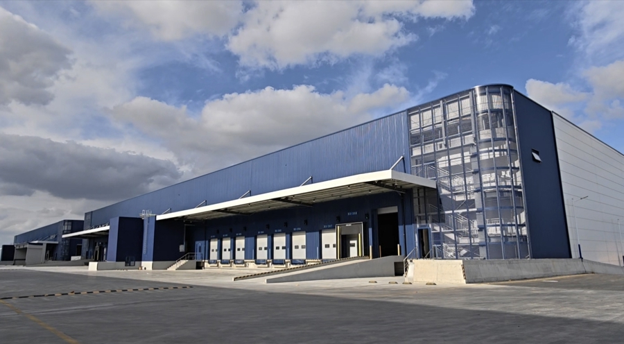 旗舰仓由四栋坡道高标准仓库以及一栋全自动智能库组成,并配有自动化仓储存取系统以及堆垛机、轨道式导引车和自主移动机器人等自动化设施。