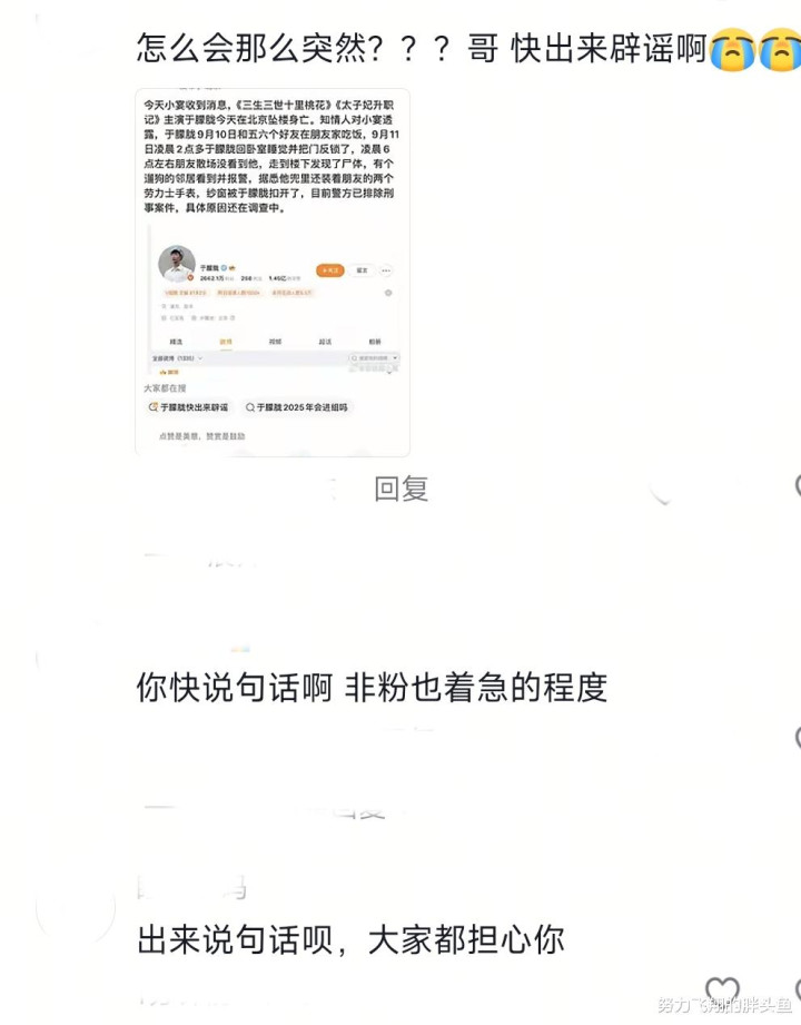 这一消息瞬间引起了网友的担心,不少网友发出,如果消息属实不异于当年听到乔任梁身亡的消息。