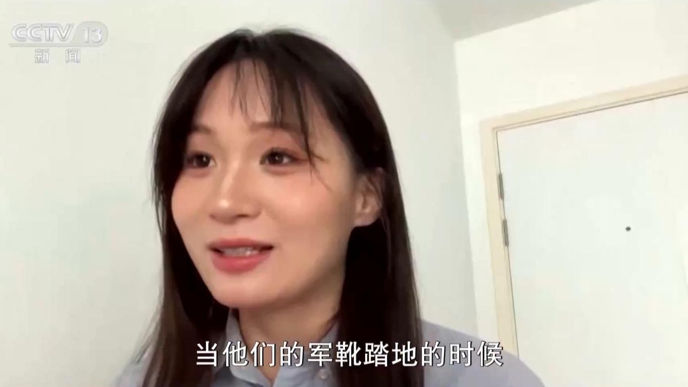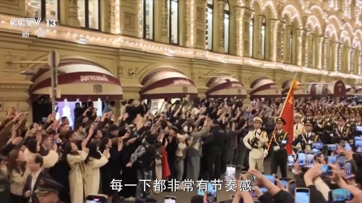 中国在俄罗斯留学生 胡可心:我们当时去的时候人山人海,在莫斯科看到这么多同胞组成的方阵,那种震撼是难以言表的,而且当他们的军靴踏地的时候,每一下都非常有节奏感,都像踏在我们的心跳上一样。